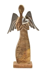 Dřevěný anděl Mango s kovovými křídly 42x22x6 cm M