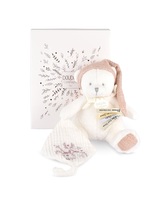 Doudou Dárková sada Plyšový muchláček medvídek s čepičkou růžový 25 cm