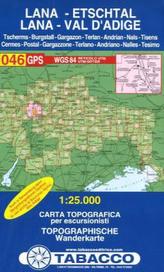 Tabacco topographische Wanderkarte Lana, Etschtal. Lana, Val d' Adige