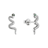 EG1443 Stříbrné náušnice had se zelenými zirkony - zvířátka