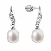 Půvabné visací náušnice se zirkony a pravou říční perlou 21092.1B Evolution Group