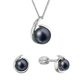 Sada stříbrných šperků s černými říčními perlami 29063.3B peacock (náušnice, řetízek, přívěsek) Evolution Group