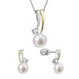 Perlová souprava šperků se zirkony a říční perlou 29071.1B (náušnice, řetízek, přívěsek) Evolution Group