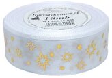 Wstążka metal Gwiazdki, 25mm/18mb, biała/złoto, Florystyka
