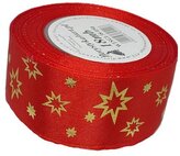 Wstążka metal Gwiazdki, 38mm/18mb, czerwona/złoto, Florystyka