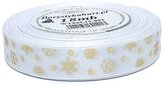 Wstążka metal Śnieżynki, 15mm/18mb, biała/złoto, Florystyka