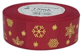 Wstążka metal Śnieżynki, 25mm/18mb, c.czerwo/złoto, Florystyka