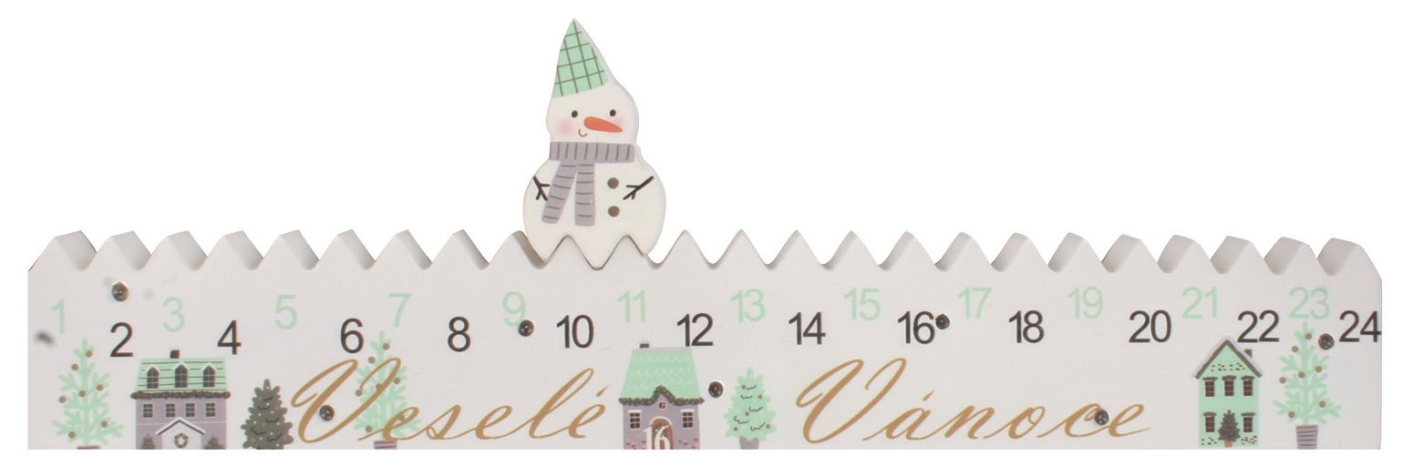 Adventní kalendář Veselé Vánoce s LED na postavení 40 x 13 x 2 cm