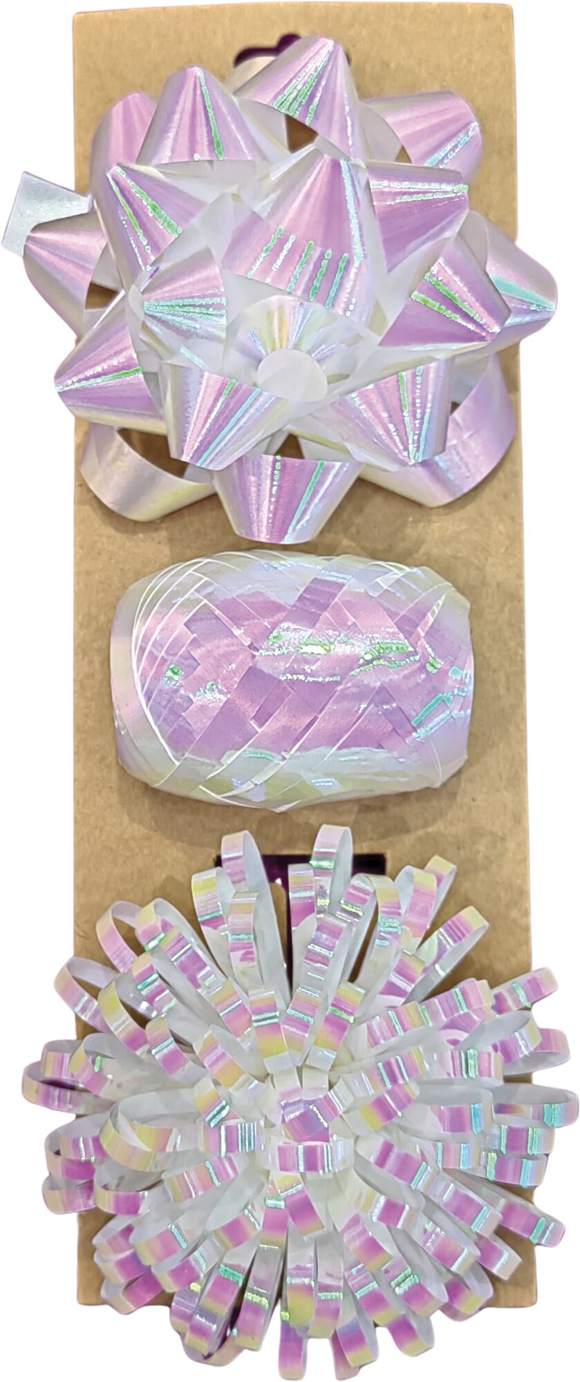 Dárková sada růžová duhově lesklá, 3 ks (stuha 10 m + 2 mašle)