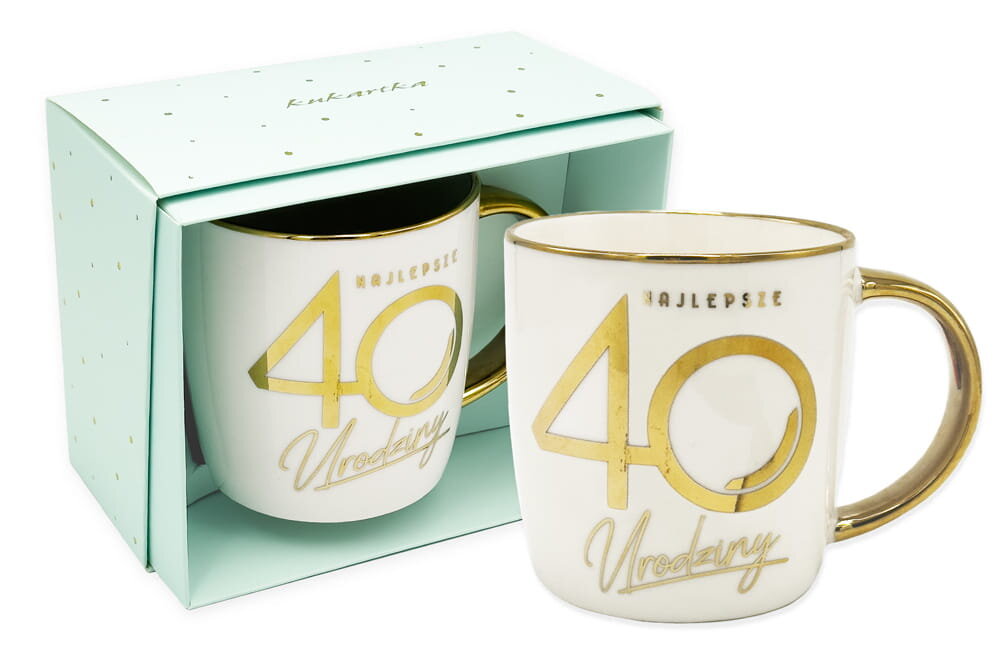 Kubek Elite "Urodziny 40" EL-004 Kubki Elite Kukartka to doskonały pomysł na prezent. Wykonane z wysokiej jakości porcelany, kubki są eleganckie, subtelnie ozdobione złotem i zapakowane w piękne pudełko. Cechy szczególne: Typ produktu: kubek na prezent, Materiał: porcelana, Wymiary: wys. kubka: 9...