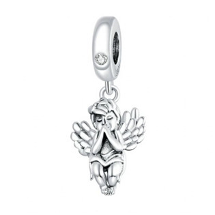 B0410 Stříbrný přívěsek korálek na náramek andílek - andílci