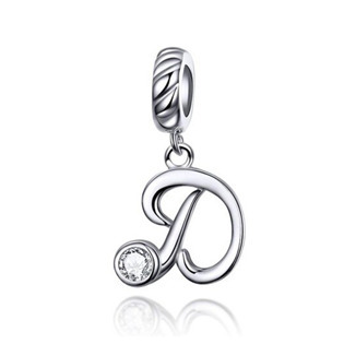 B0352-D Stříbrný přívěšek korálek na náramek - písmeno D - iniciály