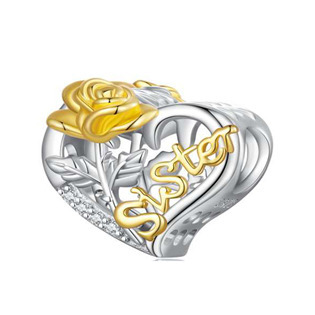 B0903 Stříbrný přívěšek korálek na náramek Sister - srdce
