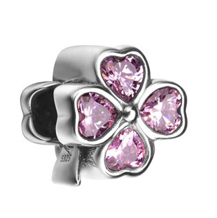 NB-8252 Stříbrný přívěšek korálek na náramek čtyřlístek - čtyřlístky