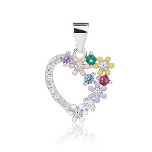 NB-4543 Stříbrný přívěsek srdíčko s květinkami - srdce