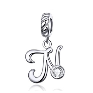 B0352-N Stříbrný přívěšek korálek na náramek - písmeno N - iniciály