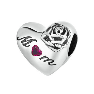 B0109 Stříbrný přívěšek korálek na náramek - srdce