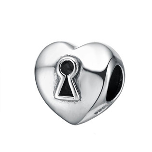 NB-8255 Stříbrný přívěšek korálek na náramek zámeček - srdce