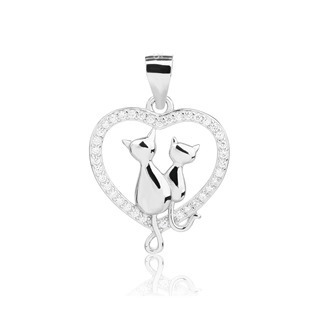 Stříbrný přívěsek v podobě kočiček v srdíčku se zirkony