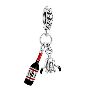 B0157 Stříbrný přívěsek korálek na náramek lahev vína - potraviny