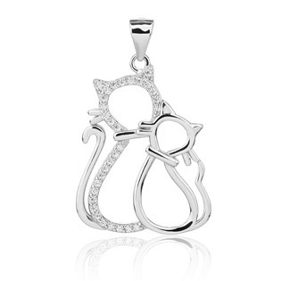 Stříbrný přívěsek v podobě sedících kočiček dekorovaných zirkony čiré barvy