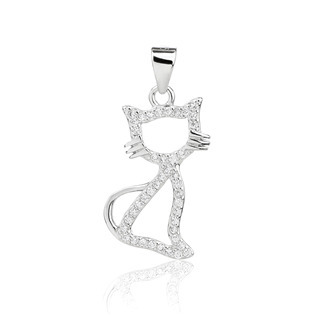 Stříbrný přívěsek v podobě sedící kočičičky dekorované zirkony čiré barvy