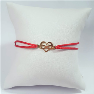 KA1179R-GD Červený textilní náramek srdce a nekonečno, Ag 925