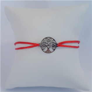 KA1051R-ST Červený textilní náramek strom života, Ag 925