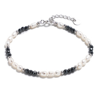 AU0047 Minerální náramek přírodní Hematit a perly, stříbro AG925