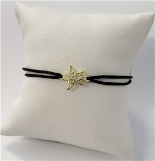 KA1730K-GD Černý textilní náramek andělíček, Ag 925 - andílci