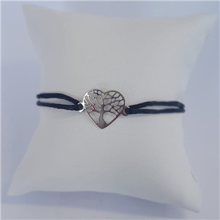 KA1005K-ST Černý textilní náramek strom života srdce, Ag 925