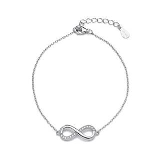 Dámský stříbrný náramekNáramek je vyroben ze stříbra s jakostním označením 925/1000 a povrchově upraven rhodiovánímRhodium patří mezi drahé kovy, patřící do skupiny platinových a chrání stříbro před černáním, zvyšuje lesk šperkůpovrchová úpravarhodiummateriálstříbro (Ag 925/1000)motivnekonečno -...