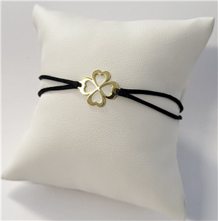 KA1726K-GD Černý textilní náramek čtyřlístek, Ag 925 - čtyřlístky