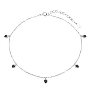NB-6048 Stříbrný náramek na nohu s černými srdíčky - srdce
