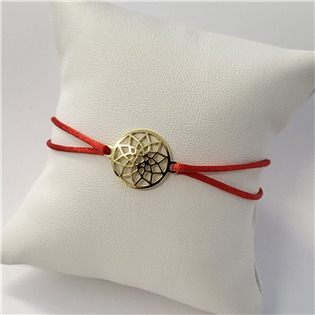 KA1349R-GD Červený textilní náramek mandala, Ag 925