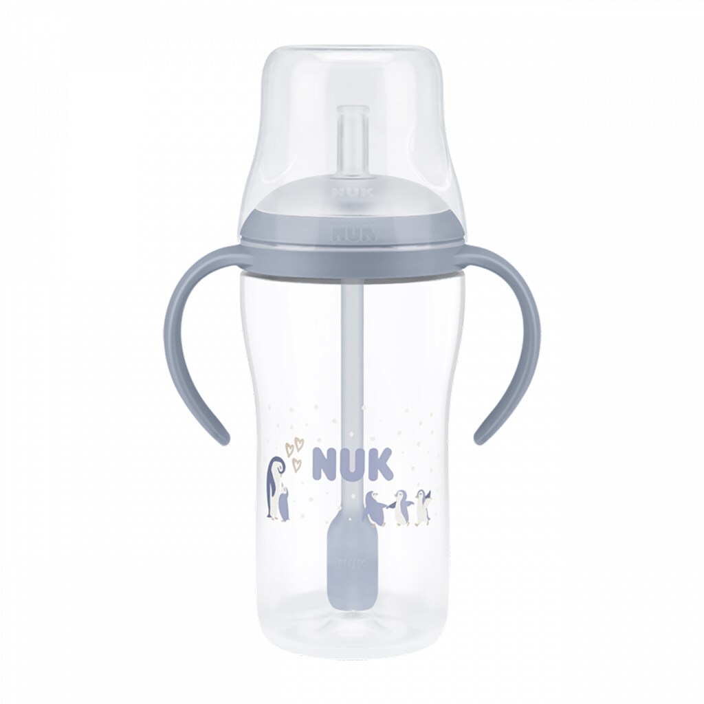 Lahvička na učení NUK Perfect Match se silikonovým brčkem, 260ml, s kontrolou teplotyPomáhá přirozenému přechodu z lahvičky na hrneček.Brčko je extra měkké a ohebné, se širokou oporou pro rty, která se přizpůsobuje dětským ústům.Technologie proti úniku tekutinVyrobeno v Německu z vysoce...