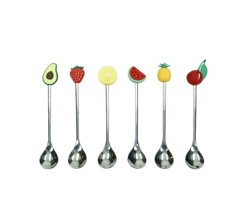 Sada 6 lžíc z nerezové oceli se vzorem ovoce. Exotické ovoce mají společný půvab, líbivost, šťavnatost a výrazná dekorativní funkce, která dokáže zkrášlit jakýkoli kontext. Sada 6 lžiček Fruits z oceli s ovocnou rukojetí ozdobí váš stůl šířící krásu stejně jemnou jako detailní. Láska a jemnost...