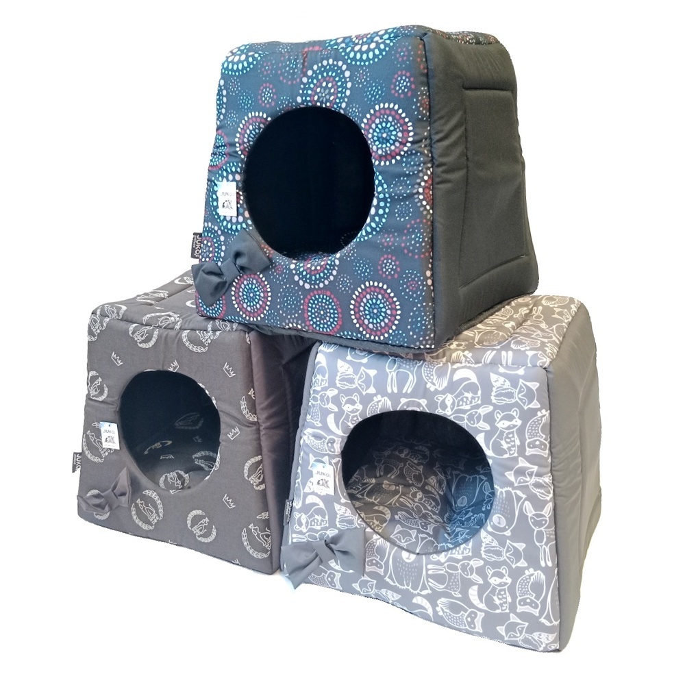 Látkový domeček poskytuje příjemný úkryt a nerušený odpočinek.Využitelné 3 způsoby - domeček, taška nebo pelíšek.Spodní část má 2 vrstvy složené z měkké spodní části domečku a vyjímatelné podložky. Izolují psa od chladné podlahy.Z pevného materiálu, který zabezpečí stabilitu a zachování tvaru....