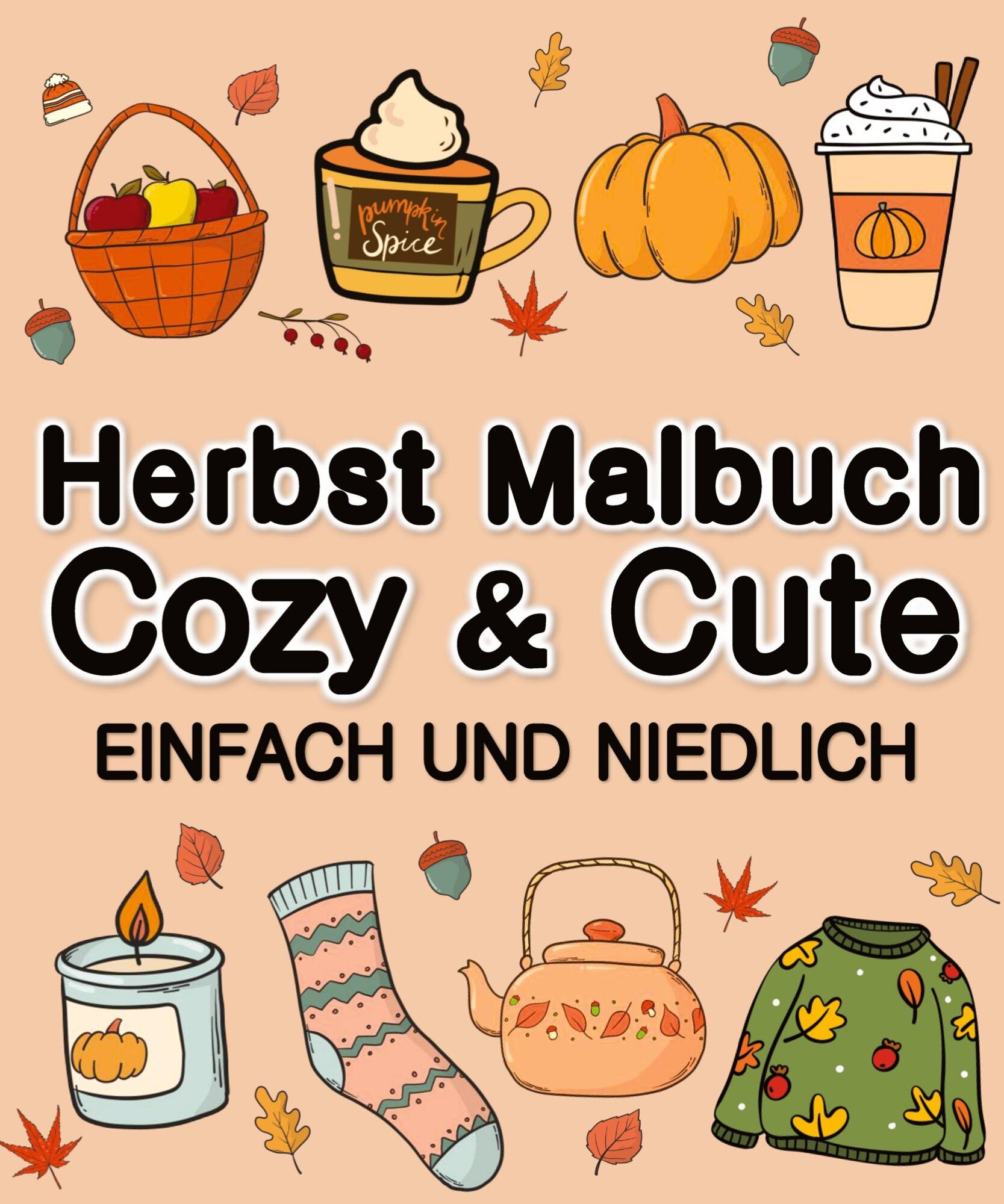 Herbst Malbuch Cozy & Cute Einfach und Niedlich für Erwachsene, Jugendliche, Kinder, Mädchen
