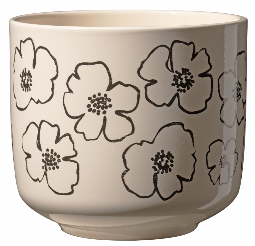 Béžový keramický květináč Bari s černými květy