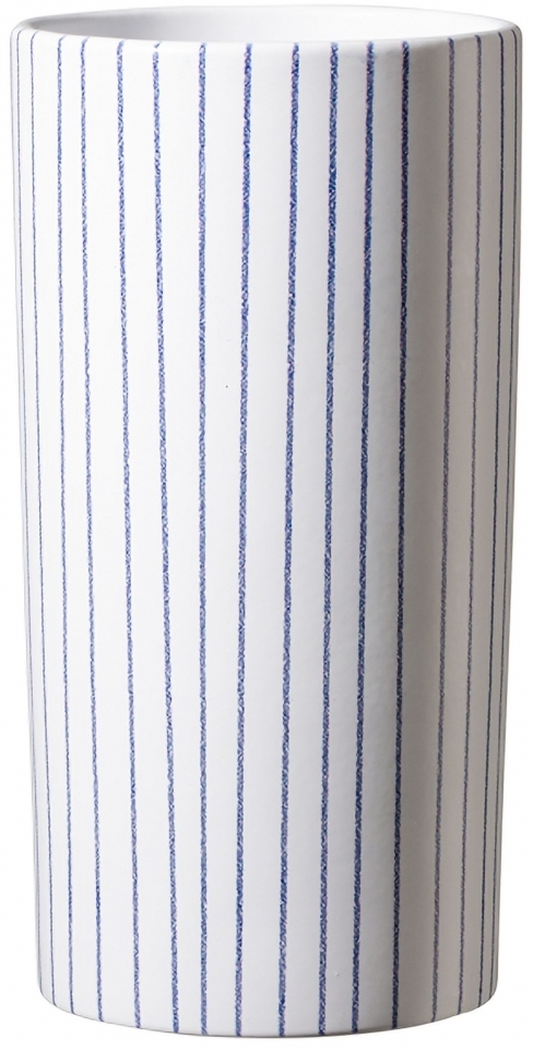 Bílá keramická váza s jemnými modrými proužky 11 x 21 cm