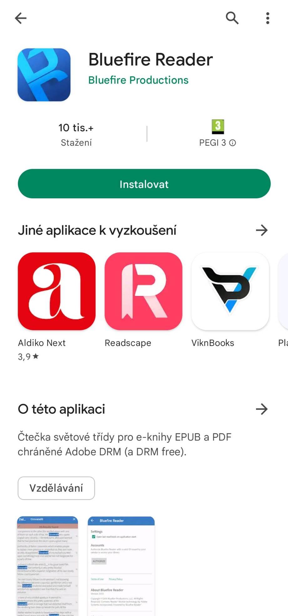 Pro formát Mobi je vhodná aplikace Kindle for Android také dostupná v Google Play.