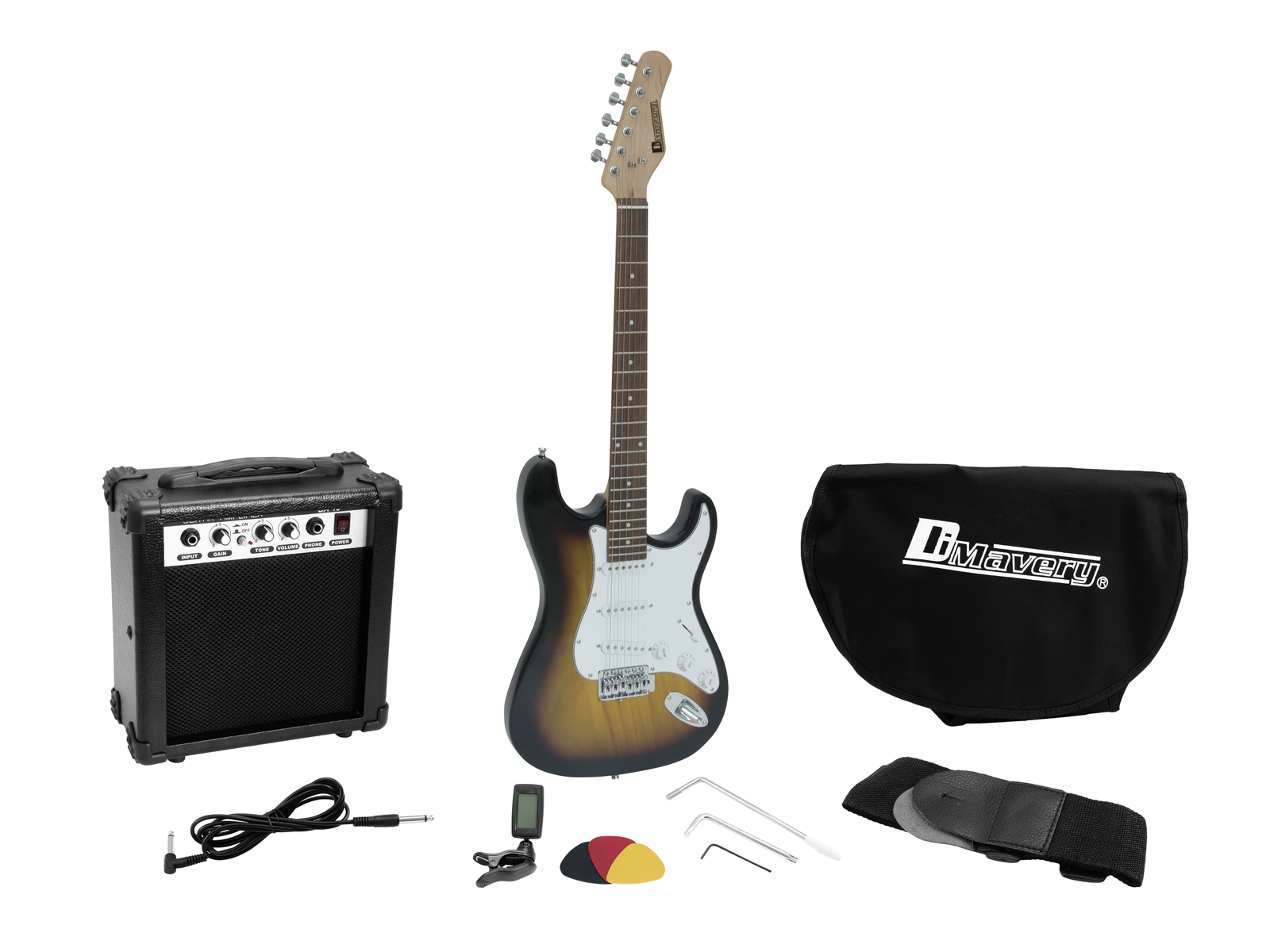 Dimavery EGS-1, elektrická kytara s kombem a příslušenstvím, sunburst