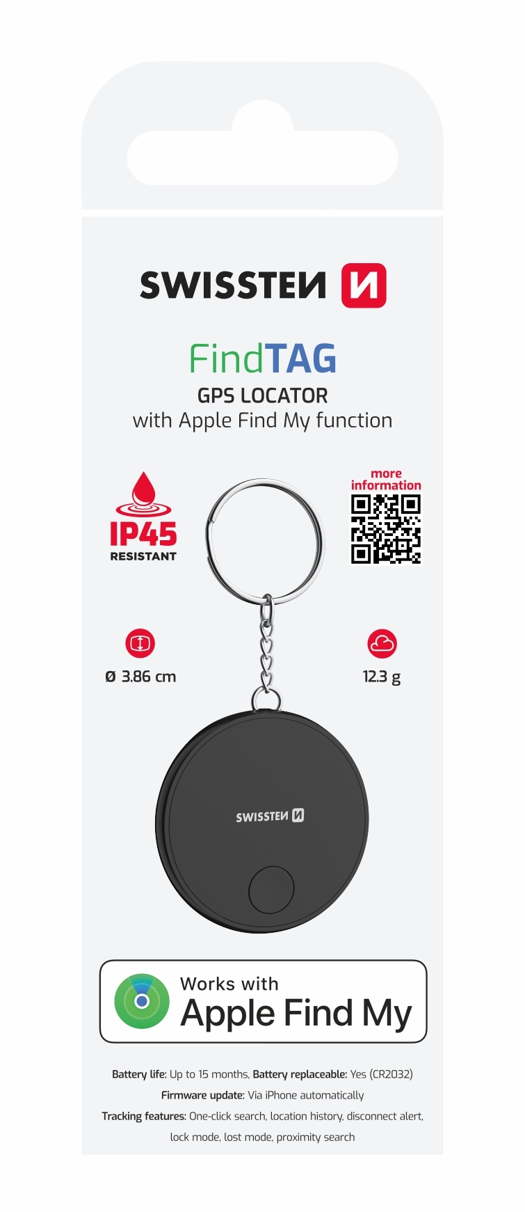 SWISSTEN FIND TAG CHYTRÝ LOKÁTOR S FUNKCÍ APPLE FIND MY ČERNÝ