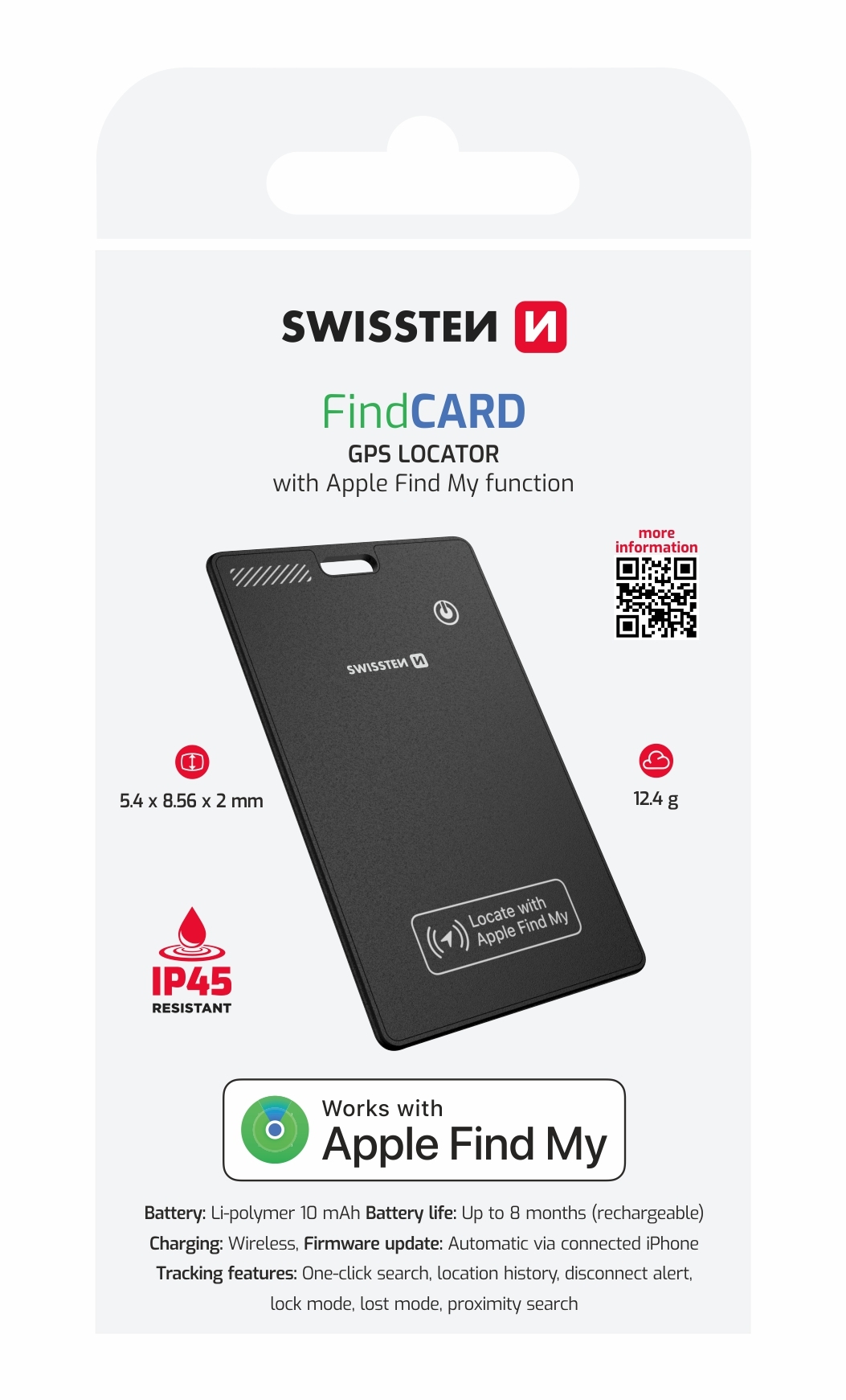 SWISSTEN FIND CARD CHYTRÝ LOKÁTOR S FUNKCÍ APPLE FIND MY ČERNÝ