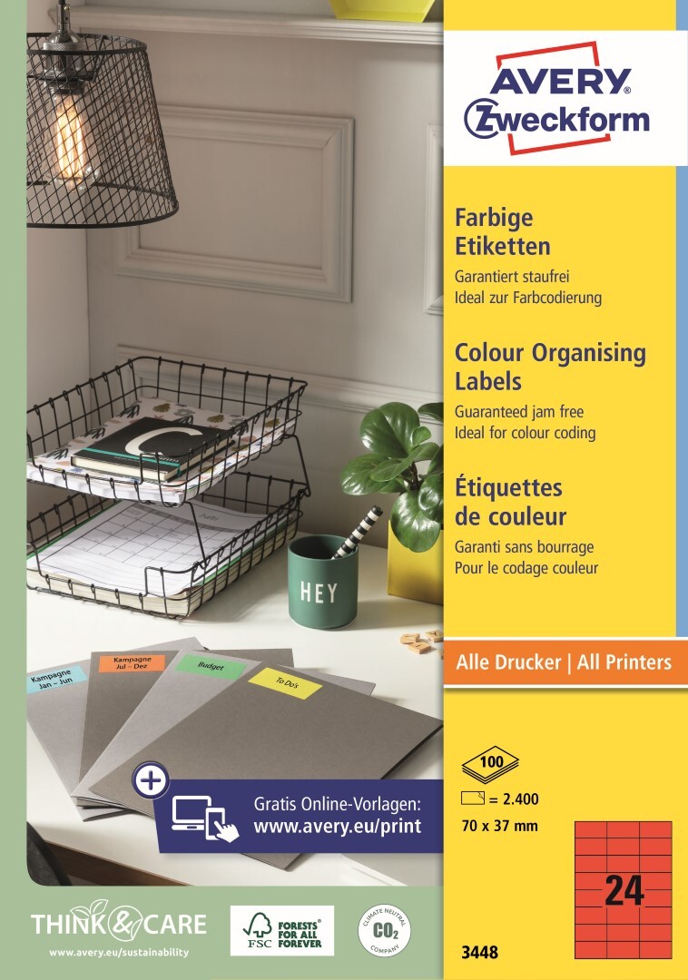 Avery Zweckform 3448 Barevné etikety 70x37 mm, červené