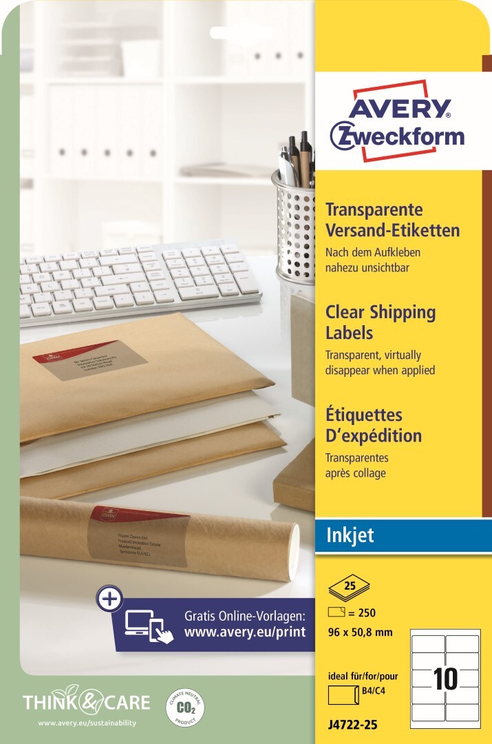 Avery Zweckform J4722-25 Transparentní PET etikety pro Inkjet 96x50,8 mm, mléčné