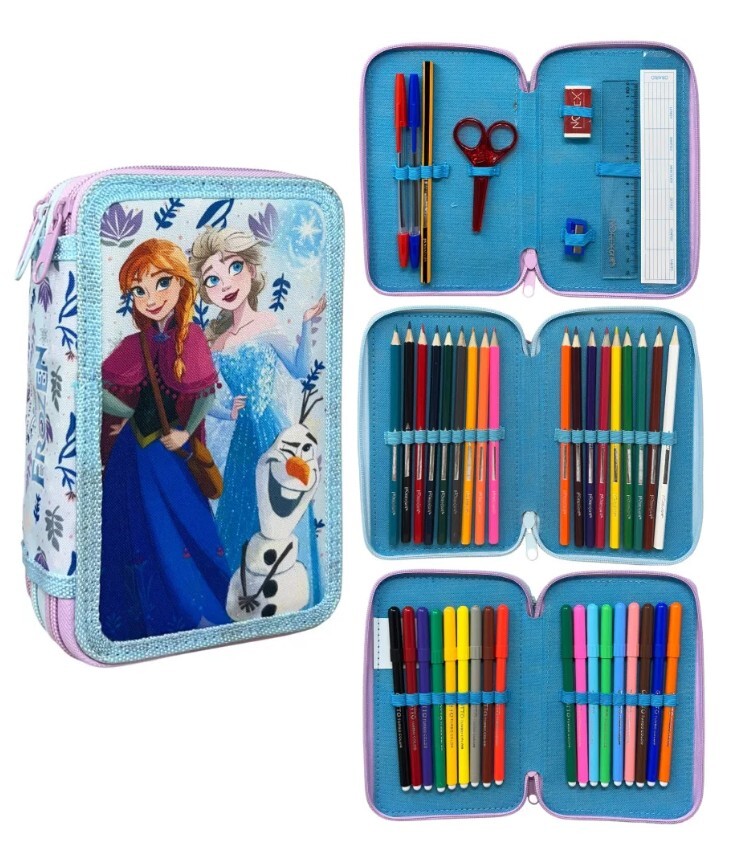 Školní penál třípatrový FROZEN Elsa Anna a Olaf s výbavou modrý