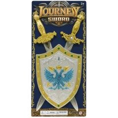Zestaw Rycerski JOURNEY SWORD - Tarcza i Dwa Miecze (Repliki)Opis Produktu:Przenieś swoje dziecko do średniowiecznego świata rycerzy i bohaterskich wypraw dzięki zestawowi JOURNEY SWORD! Ten kompletny zestaw akcesoriów rycerskich jest idealny do kreatywnej zabawy, balów przebierańców i odgrywania...