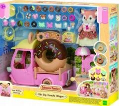 Zapraszamy na pyszne pączki! Pączkowy pojazd z wielkim okrągłym donutem na dachu pojawił się w krainie Sylvanian Families. Kiedy mama z rodziny Jelonków Primrose podjeżdża swoim pączkowym pojazdem, wszyscy miłośnicy słodkich wypieków ustawiają się w długiej kolejce. Wystarczy kilka ruchów i...